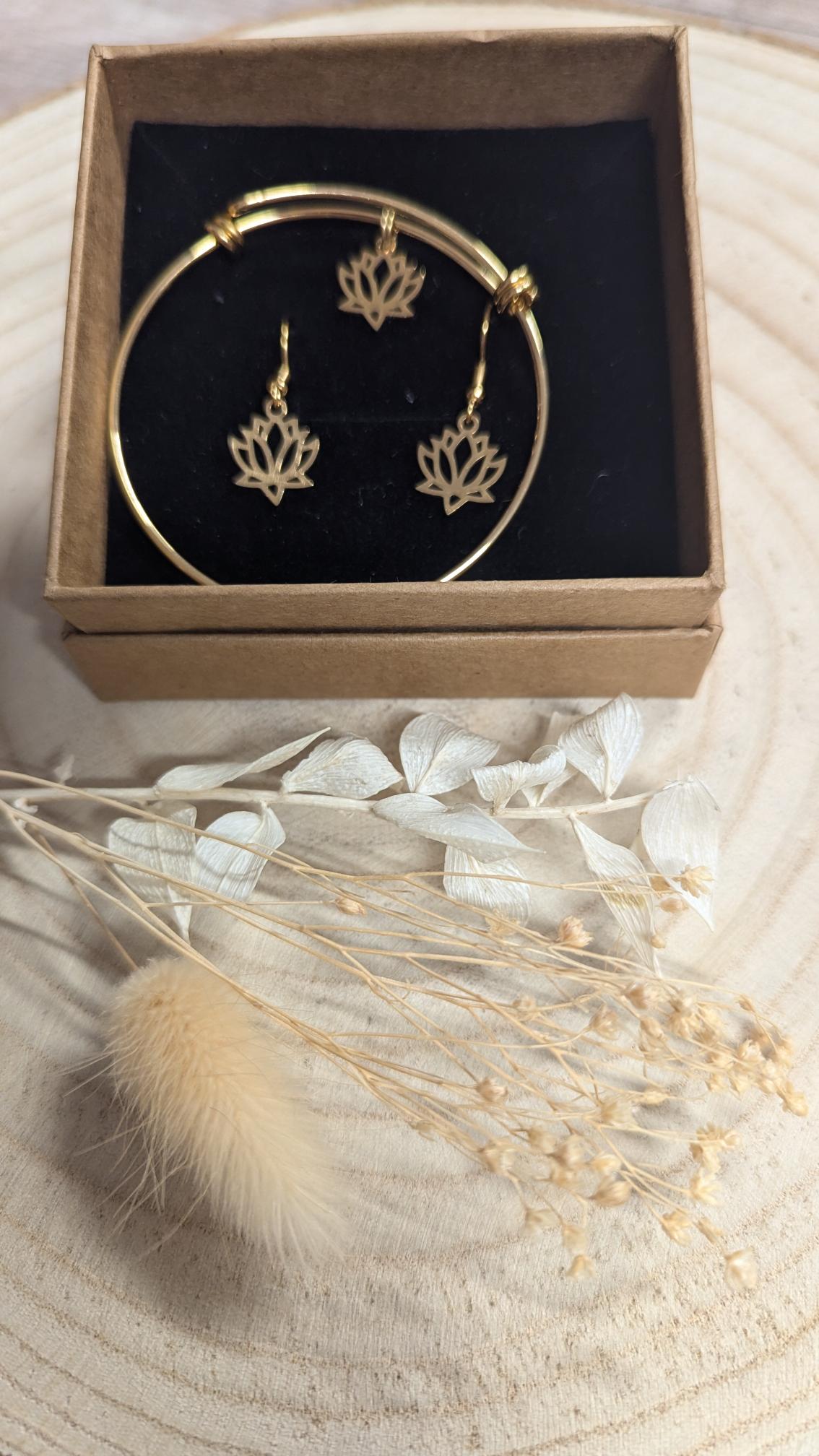 Coffret bijou acier doré pampille lotus