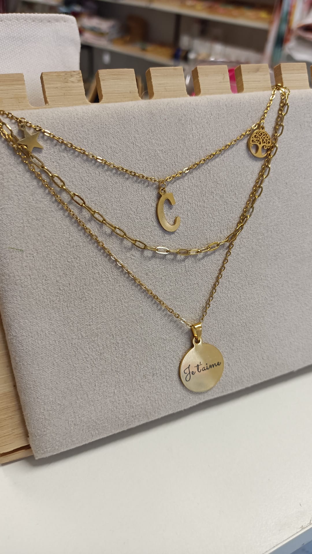 Retrouvez la collection Margaux avec ce superbe collier triple doré en acier inoxydable.
